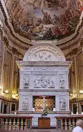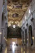 After the earthquake in 1703, the inside of the church was completely rebuilt in Baroque style by three great architects of that period: Cipriani, Contini and Biarigioni.[5][11] In 1724 Ferdinando Mosca made the magnificent wooden ceiling which was painted by Girolamo Cenatiempo, who was also the painter of frescos in the chapel hosting the saint's mausoleum. In 1773 Donato Rocco completed the principal altar.