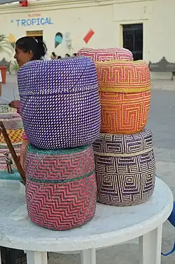 Despite the interest in documenting handcraft traditions, no complete pieces from before the 1960s remain.[1] Although not as popular as other handcraft traditions, basketry can be found all over Mexico, especially in indigenous communities in Oaxaca, Chiapas and Veracruz,[4] with many created for collectors.[1] However, a number of basketry items are still make for local use, such as a cradle used by indigenous women in the Sierra Norte of Puebla, and pieces created for ceremonies in various parts of Mexico,[1][5] such as special baskets created by the Seri in Sonora and the Nahuas in the Huasteca region for Day of the Dead.[5]