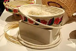 Indigenous artisans continued to make basketry through the entire colonial period. Unlike other handcrafts, it was considered completely domestic and therefore not regulated like ceramics and woodworking, nor was there any formal teaching by Spanish missionaries.[1][4] However, European designs, such as baskets with handles, sombreros, palms braided for Palm Sunday and heart decorations were introduced, along with the working of wheat and rye straw.[4][1]