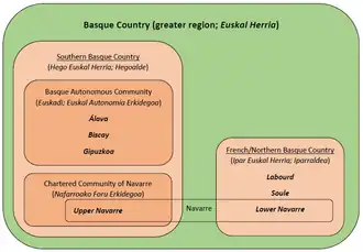 ![]() The seven historical provinces usually included in the definition of the greater region of the Basque Country. | |
