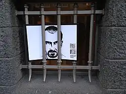 In December, he was moved to a military prison to await a military trial.[55][56] In response, a fasting campaign was launched to raise awareness about Khartabil's deteriorating incarceration situation.[57] On 25 January 2013, reports circulated about the pending trial and fears of his execution.[58] On 15 March[59] the #FREEBASSEL project organized a #FREEBASSELDAY campaign with Creative Commons, Mozilla, and other community leaders, leading to public artworks, meetups, press, and videos.[60][61][62][63][64][65]