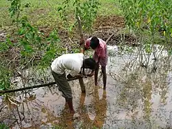 People living close to the forests but who have no land or very little land become forest gatherers and/or labourers. They are heavily dependent on forest produce, which they gather and sell or directly consume. At times, this leads to conflicts with the forest administration, due to differences between the customary and official use patterns of the forest.[14][15] Occasional labour on fields or in the forest supplements their income. Migrant labour is also prevalent among the tribal population of Bastar, especially among the Bison Horn Maria.[16]