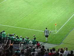 He scored his first two international goals on 8 June 2005 against Russia[7] and scored his first goal in a competitive match against Tunisia on 18 June 2005 at the Confederations Cup in Germany.[63] He was called up to the 2006 FIFA World Cup on home soil and shot into prominence at the tournament with his two brilliant long-range strikes in the third-place match against Portugal, which won him the Man of the Match award.[64] The match ended 3–1 with the 21-year-old nearly claiming a hat-trick but his deflected free kick was credited as an own goal to Armando Petit.[65]