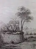 A dry ditch, serving as the first line of defense, surrounded the bastioned wall's perimeter, except along the Loire River. Earth excavated from the ditch was used to elevate the ground level within the bastions.[13] Between the Bourbon and Saint-Éloi gates, the Dolve stream,[16] also known as the “encircling stream” (names recorded after the wall’s construction), was incorporated into the ditch. This stream helped drain moisture from the marshy area containing oxbow lakes and channeled some of the city’s sewage.[17] From the mid-19th century, the heavily silted stream, with stagnant water causing local complaints, was filled in or culverted along its entire length.[18]