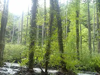 In central area of Batsara gorge there are remains of relict dendroflora from tertiary period. About 270 ha is covered with yew (Taxus baccata) forests, which is the largest yew forest in the world.[3] Yew grows as a separate grove, and interspersed with maple, ash, linden and other trees.