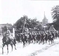 The shock battalions were credited for the initial success of the Kerensky offensive during its first few days in July 1917.[5] In November 1917 they also defended the Stavka of the Supreme Commander, the army high command, when the Bolsheviks began taking control.[6]