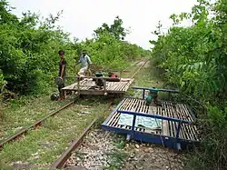 Approximately 4 kilometres (2.5 mi) south-east of Battambang Royal railway station started the norry or Bamboo Train.[6][7][8]