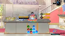 Cooking contests typically start with a combat phase in which players set out to gather ingredients from plants and hunt monsters in a small area using physical or magical attacks. After defeat, the monsters drop body parts which the player collects as ingredients for their dishes, after which the player returns to their kitchen. The cooking phase is performed by dropping gathered ingredients into cookware, which are represented as differently colored "flavor gems".[2] With the ingredients in the 4x4 cooking zone, the player can rotate them like Puyo Puyo.[3] When flavor gems of the same colour are aligned, they combine to increase their rank and the quality of the dish.[1] As ingredients are matched and gems rank up, the player's dish increases its quality. Once finished cooking, the player has to deliver the dish to the judges before time runs out.[2]