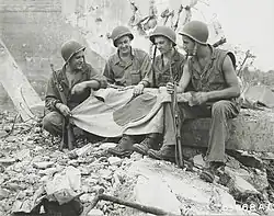 Toward the end of the first week of October, the protracted conflict had degenerated into patrol action with sniping, ambushing, and extensive booby-trapping employed by both sides. Goto was killed on 19 October fighting to keep possession of a cave.[7] The last day of fighting was 22 October with a total of 36 days of fighting and blasting the Japanese resistance from their caves with explosives, tanks, artillery and flamethrowers. The 81st Infantry Division had finally taken the whole of Angaur, although at a high cost.[6]