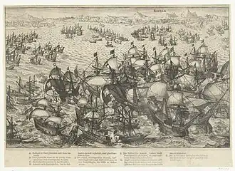 The naval Battle of Bantam took place on 27 December 1601 in Bantam Bay (now Banten Bay), Indonesia, when an exploration fleet of five Dutch ships under the command of Wolfert Harmensz and a Portuguese fleet under André Furtado de Mendonça, sent from Goa to restore Portuguese authority, met in the Indonesian archipelago. The battle resulted in Dutch victory and forced the Portuguese to retreat.[1] The outnumbered Dutch fleet took three Portuguese fustas as prizes.