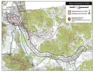 The Battle of Barbourville was one of the early engagements of the American Civil War. It took place on September 19, 1861, in Knox County, Kentucky during the campaign known as the Kentucky Confederate Offensive.[1] The battle is considered the first Confederate victory in the commonwealth, and threw a scare into Federal commanders, who rushed troops to central Kentucky to try to repel the invasion, which was finally stopped at the Battle of Camp Wildcat in October.