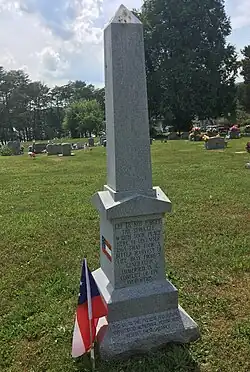 Shackelford commanded about 5,000 men organized into five brigades that included both cavalry and mounted infantry regiments. One unit, the 8th Michigan Cavalry Regiment was armed with the Spencer repeating rifle. Shackelford deployed Colonel Frank Wolford's division to the south of the main road. Two of Wolford's brigades, those of Bond and Lieutenant Colonel Silas Adams, were posted on a commanding hill. Wolford's third brigade under Colonel Charles D. Pennebaker was placed to the left rear of the other two. The 45th Ohio Infantry Regiment (mounted) was held in reserve. Colonel John W. Foster's division was deployed north of the main road. Colonel Israel Garrard's brigade held the center while Colonel Horace Capron's brigade defended the left flank on a hill with a church and cemetery. Five companies of Colonel John H. Ward's 27th Kentucky Infantry Regiment (mounted) took position inside the Bean's Station hotel.[14] Union artillery unlimbered west of the hotel on both sides of the road.[18]