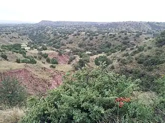 ![]() Blanco Canyon, seen from the west rim, on Highway 82 | |||||||