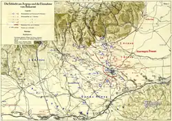 The Romanians suffered a considerable setback when a staff car carrying attack plans accidentally drove into a German position and was captured.[19] These plans were vital to the Germans. As various developments took place, (General Culcer's "betrayal", the lack of involvement on the part of the Russian armed forces), the German, Bulgarian and Turkish forces, by taking advantage of their superior numbers, soon managed to recover and push back the Romanian forces, leaving the way to the capital open.