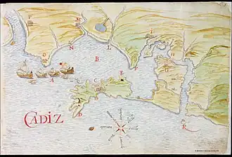 ![]() Map of the Bay of Cádiz (1632) | |||||||