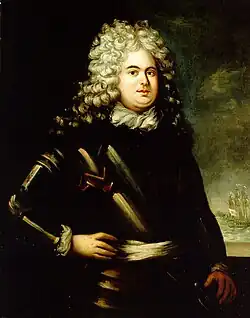 On 26 December Great Britain declared war on Spain, France did the same soon after on 9 January the following year.[48] In spite of the unfavourable turn of events, Alberoni was even more unwilling than at first to accept the terms dictated by the Quadruple alliance. To reverse the course of the war, Alberoni began to collect armaments and shipping at Cádiz and Corunna for an expedition to Britain itself.[49] He sought alliance with King Charles XII of Sweden, he obtained the support of the Jacobite pretender, James Francis Edward Stuart. His plan was an invasion of the western England by 5,000 men under British turncoat James Butler, 2nd Duke of Ormonde.[50] To deter Swedish involvement, Britain dispatched a squadron of ten ships of the line led by John Norris to the Baltic.[51] The Swedish ships remained at their ports, and no naval action took place.[52] Moreover, on 11 December Charles XII was killed by a cannonball at the Siege of Fredriksten, and Spain was deprived of its only potential ally.[45] Alberoni decided to continue the project and entrusted the command of the fleet destined to England to de Guevara.[53] Off Cape Finisterre the expedition was dispersed in a long and violent storm which sank several ships and scattered the fleet.[49] Three frigates and five transports with troops reached Scotland and disembarked about 400 men, but they were soon defeated at the Battle of Glenshiel.[54]