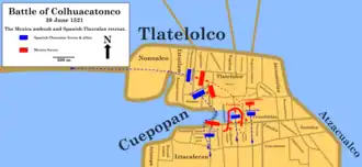 The Battle of Colhuacatonco[3] was fought on 30 June 1521 during the late stages of the Siege of Tenochtitlan between Spanish-Tlaxcalan forces and the Mexica Empire (also typically referred as Aztec Empire). It is regarded as the most important victory achieved by the Mexica during the siege.[4]