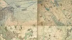 On the southwestern end of Csorna was a cemetery, surrounded by a stone wall; it even had a trench very suitable for a defensive line, and from the right some banks, making the cemetery a very good place for an efficient defense. The region behind the graveyard and the marketplace in connection with it was very suitable for placing the reserves. In the background was a grange surrounded by walls and buildings with ditches on the left, and from the front, a poplar park made a second defense line.[20]
