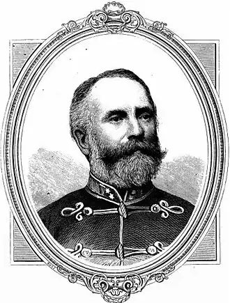 From a spy, Kmety heard that an imperial half brigade (2690 soldiers) led by Major General Franz Wyss was stationed in the city of Csorna.[16] Kmety wanted to profit from this opportunity and decided to make a surprise attack against Csorna.[16] The Wyss brigade was subordinate to the Imperial I. Corps under the command of Lieutenant General Franz von Schlik, with its headquarters at Magyaróvár. The brigade had to occupy Kapuvár and Csorna as a vanguard of the I. corps.[16] The brigade was divided into 2 columns, Wyss marched to Csorna with 2,690 soldiers - 2 battalions, two Kaiserjäger companies, 4 uhlan squadrons - and 8 guns, while in Kapuvár he had 2,026 men - 2 battalions, 2 uhlan squadrons - and 3 guns.[16] The city was at 40 km distance from Pápa, requiring 16 hours of marching, an exhausting task for the Hungarian Honvéd troops, but he set his troops on the march.[14] Kmety's division was characterized by a Honvéd officer in the "Győri Közlöny" newspaper: The ragged-looking, the worn-down division was superbly disciplined, accustomed to battle; - led by skilled officers, with unbounded confidence in its commander. Kmety himself was loved by his soldiers: gave nothing to his appearance, and he had his uniform made only for the occasion when he was sent to Kossuth with the news of the capture of Buda Castle. Otherwise, he wore a simple honvéd mackinaw, leather trousers, rider's boots with large spurs, mostly without any distinguishing marks, and an ordinary officer's cap (...) this was his winter and spring attire, until in the summer he replaced the mackinaw with a sleeveless coat (...) (Hazánk, 1888).[16]