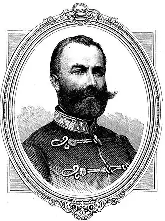 According to József Bánlaky it was Görgei's order to attack the enemy, no matter its size.[11] According to Attila Horváth Görgei did not gave the order to Nagysándor to attack the enemy, but to resist to Russians if they attacked.[12] The cause of this misunderstanding was that the chief of the staff of the I. corps, Major István Pongrácz, in his memoirs written 18 years after the events, remembered wrongly Görgei's order, writing in the newspaper called Hon that Görgei gave him the order to attack the Russians, while the order of his commander sent to him before the battle was only to try to withstand if the enemy attacked.[12] According to Bánlaky Nagysándor discussed with his officers what to do next.[6] Nagysándor and Máriássy sustained Görgei's order, the commander of the cavalry, Colonel István Mesterházy was unsure, Bobich wanted to fight only if the enemy attacked, while Korponay and Pongrácz were against the attack.[11] Seeing this disagreement among his officers, Nagysándor decided not to attack the Russians, but to remain alert all day, and to retreat in silence during the night.[11] According to Máriássy's memoirs, they rode with Nagysándor to the outposts, where they spoke with the officers of the Russian vanguards, who invited them to the five o’clock tea.[11] After the muster parade of the outposts, at 11 a.m., Nagysándor gave up the command to Bobich, and together with Máriássy, Pongrácz and other officers he went in the city, to a restaurant, but they barely started the meal, when they heard the Russian gun shots, signaling the start of the battle, so they immediately rushed to their posts.[11]