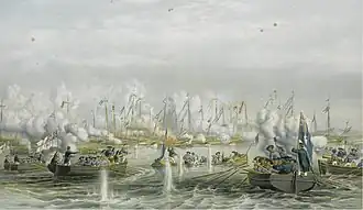 ![]() Advance of British boats during the naval battle at Fatshan Creek, by Oswald Walters Brierly | |||||||