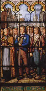 After the battle, the Vendean army melted away, as if, one chronicler wrote, "into thin air." Yet, within days, as many as 35,000 men gathered at Chatillon, and moved toward Fontenay. Under the command of Charles de Bonchamps, they withstood an hour-long cannonade and sustained musketry fire; not until Louis Marie de Lescure advanced to the head of his column did the insurgent army move forward. Reportedly, Lescure, who had given his men the command to attack, saw them waver and hang back. Alone he advanced, waved his hat, and shouted (reportedly) Vive le Roi! (Long live the king!) The Republicans showered him with bullets, but he was unwounded. Turning, he shouted to his men, "The Blues (republicans) do not know how to shoot." The insurgents rushed forward and took the city.[10] The general advance of the insurgents, who had little ammunition and few weapons, caused disorder among the Republican troops; they fled. The insurgents recaptured their cannon, a symbol of their unity, and acquired, in the process, stores of grain and weapons.[11]