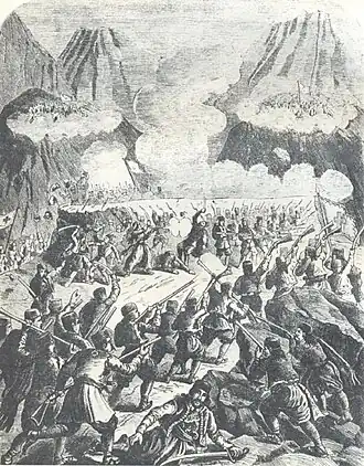 The Ottoman army was well armed with rifles, sabers, and dervish axes, while the Montenegrin army was poorly armed with yatagans,[a] flintlock pistols and a small number of flintlock rifles and numbered only about five thousand soldiers.[3]