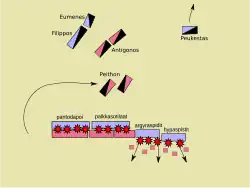 - ^ a b Diodorus Siculus, Bibliotheca Historica XIX 43,8-44,3; Plutarch, Parallel Lives, the Life of Eumenes 17,1-19,1; Cornelius Nepos, Parallel Lives, Life of Eumenes, 10,3-13,1.
