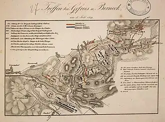 The Battle of Gefrees was fought on 8 July 1809 during the War of the Fifth Coalition between a joint force of Austrians and Brunswickers under the command of General Kienmayer and a French force under the command of General Junot, Duke of Abrantès. The battle ended in victory for the Austrians who avoided being trapped by Junot and a force of Saxons and Westphalians led by Jérôme Bonaparte, King of Westphalia. After Jérôme's troops were defeated at the Battle of Hof, the Austrians effectively had control over all of Saxony. However the victory was in vain, due to the major Austrian defeat at Wagram and the Armistice of Znaim.[1]