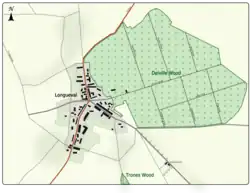 - ^ Maurepas lay due east of Hardecourt, south-west of Combles on the D 146. The village was a group of farms, each with a meadow bounded by trees at the junction of several roads. Falfemont Farm was a German strong-point, south-east of Wedge Wood and Guillemont, south-west of Leuze Wood on high ground overlooking Allied positions.[4]