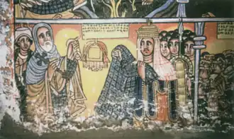 ![]() Zara Yaqob gifting the garment and the crown of Badlay as a present to Waynut and Sarsa Petros at Debre Werq | |||||||