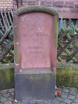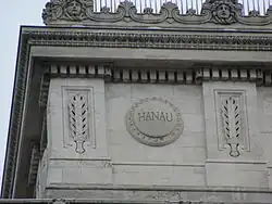 To commemorate the Battle of Hanau, memorials were erected in the city of Hanau, five of which have been preserved: at Lamboystrasse, Karl-Marx-Strasse and Robert Blum Strasse, and two more at the Kinzig bridge. The battle is also engraved at the Arc de Triomphe in Paris in the list of battles won by Napoleon.