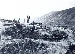 The Italian attack, observed by Italian dictator Benito Mussolini in person, was launched on 9 March with a heavy artillery barrage and air bombardment; on the main sector, held by the Greek 1st Division, over 100,000 shells were dropped on a 6 km front. Despite repeated assaults and heavy shelling that dug up the soil, the defenders of Hill 731 held during 9–15 March.[6] With the support of the Greek artillery, they managed to take advantage of the terrain and launch counterattacks. Greek riflemen charged at the oncoming Italians with fixed bayonets, under the cover of dense smoke. Dimitrios Kaslas, after the bombardment gave an order for every soldier to stand his ground no matter what, and promised to personally shoot and kill anyone trying to retreat.[7]