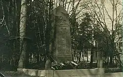 Of the Germans soldiers who fell in Hyvinkää, 15 have been buried in a park opposite the Hyvinkää railway station, which also has a monument.[12] It was unveiled on the anniversary of the conquest of Hyvinkää on April 21, 1921. A representative of the German embassy spoke at the ceremony.[13]