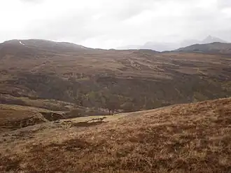 Montrose decided to face the threat by marching south and attacking Argyll. This course may have been chosen as Argyll's men now threatened the lands of several of Montrose's key supporters.[3] However, he realised that a frontal approach would be quickly detected.[5] What followed was a remarkable flanking march, during winter, across some of the toughest and wildest terrain in the British Isles, partly through snow knee-deep.[2] The Royalists first travelled up the River Tarff to Glen Buck via Culachy, and across the gorge of the Calder Burn to reach the head of the glen, 1000 feet above sea level.[5] They then climbed a further 1000 feet to Carn na Larach, before travelling down Glen Turret and Glen Roy to Keppoch, where the advance guard rested for around three hours in a barn while the main force caught up.[5]