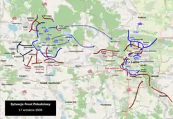 Sosnkowski's aim was to break through towards the city of Lwów.[1] To make the matter worse for the Poles, a large detachment of German motorised and mountain infantry units, composed of the 7th Infantry Division, elements of 1st Mountain Division and the SS-Standarte Germania regiment, outflanked the Polish forces and organised a defence line between the towns of Jaworów and Gródek Jagielloński, directly between the Małopolska Army and Lwów, with German 2nd Mountain Division closing in from behind and the 57th Infantry Division approaching from the north.[1]