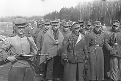 Shortly before the assault, small Combat Groups (German: Kampfgruppen) of the National Committee for a Free Germany (NKFD), an organization formed mostly of the German POWs in the USSR, took part in combat on the side of the Red Army. It was one of the small units sent for reconnaissance and infiltration of German troops and subsequent disarmament and capture of the latter, or for auxiliary combat operations. Throughout 1944, NKFD created commandos,[11] and as 1945 began, it was allowed for the NKFD to form companies;[12] members of the Combat Groups carried German weapons and were dressed in Wehrmacht uniforms.[13] A number of units consisting of "graduates" of the NKFD "anti-fascist schools" attached to the Zemland Group of Forces of the Red Army were sent to Königsberg and other places of East Prussia.[12]