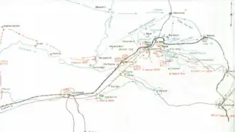 By November 1, 1920 various forces were scattered in national detachments within the town of Osmaniye. In the early hours of the morning, a large part of the French force advanced to Mamure railway station without encountering any resistance from the 1000 Kuva-yi Milliye militia fighters. French forces advancing in the direction of "the bell" met with resistance but continued to advance towards Kanlı Geçit, also referred to as "the Bloody Gateway." By noon, all French forces had reached the Blood Alley-Mamure railway line. Turkish forces from Osmaniye were able to retreat to Yarpuz, 20 km away. Turkish Forces from Ceyhan retreated to the northern bank of the Ceyhan River with a portion of the platoon beginning to move towards Kadirli.