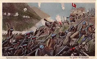 The Battle of Kircaali[1] or Battle of Kardzhali was part of the First Balkan War between the armies of Bulgaria and the Ottoman Empire. It took place on 21 October 1912, when the Bulgarian Haskovo Detachment defeated the Ottoman Kırcaali Detachment of Yaver Pasha and permanently joined Kardzhali and the Eastern Rhodopes to Bulgaria. The anniversary of that event is celebrated annually on 21 October as a holiday of the city.[3]