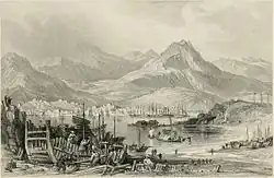 On 15 August, Lin issued an edict that prevented the sale of food to the British.[5][8] Chinese labourers working for the British in Macao were withdrawn the next day. War junks arrived in coves along the Pearl River and notices above the fresh water springs warned that they were poisoned.[5] On 24 August, the Portuguese Governor of Macao, Adriao Accacio da Silveira Pinto, announced that the Chinese had ordered him to expel the British from the colony. He warned Lancelot Dent of the British hong Dent & Co. that the Chinese planned to seize the British dwellings in Macao.[9] On 25 August, former Superintendent John Astell proposed to Elliot that all British boats should evacuate to Hong Kong.[10] By the end of the month, 2,000 people in over 60 ships were in Hong Kong harbour without fresh food or water. The ships held European merchants, lascars, and dozens of British families. The 28-gun frigate Volage of Captain Henry Smith sailed to Hong Kong on 30 August. Smith was an old friend of Elliot from their service in the West Indies Station. Elliot warned Kowloon officials that there was bound to be trouble if the embargo continued against the merchant fleet.[11]