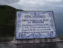 On 1 August 1829, a liberal force under the command of Count of Vila Flor, disembarked at the mouth of the ravines east of Ponta da Ajuda, which were unguarded, on the northern coast of São Miguel (near the parish of Achadinha).[2] Miguelist forces upon sighting the flotilla, marched forces from Ribeira Grande and a contingent from Furnas.[2]