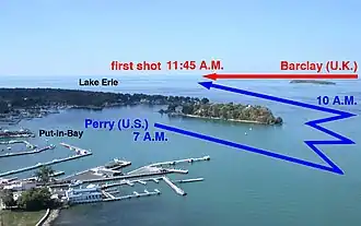 On the morning of 10 September, the Americans saw Barclay's vessels heading for them, and got under way from their anchorage at Put-in-Bay/South Bass Island. The wind was light. Barclay initially held the weather gauge, but the wind shifted and allowed Perry to close and attack. Both squadrons were in line of battle, with their heaviest vessels near the centre of the line.