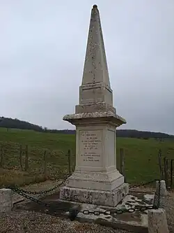 Regardless of Régel's family and unable or unwilling to consult them, veterans of the mobile guards of Haute-Marne intended to honor their dead with a monument. Theirs does not bear any religious sign, perhaps the reason for the Calvary built. by the family. "To the commander of Régel and the mobile guards killed in action at Longeau on 16 December 1870, the officers of the Mobile National Guard of Hte-Marne".