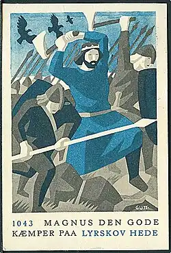 The Battle of Lyrskov Heath (or Hede) was fought on September 28, 1043, at Lyrskov, between a Dano-Norwegian army led by Magnus the Good and an army of Wends. It was a great victory for Magnus' forces; the Wendish army was crushed and up to 15,000 were killed. [1]