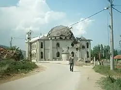 During the battle eleven NLA militants were killed, most of them while trying to regain lost ground during the NLA counter-attack.[13][36] One Macedonian T-55 tank was destroyed.[16][37] According to Macedonian general Pande Petrovski, the tank was destroyed by friendly fire.[16] Per AP News, it was believed that eight Macedonian soldiers were killed in the destroyed tank.[38][14][16] The village mosque was completely destroyed during the fighting.[20] On 11 June the Matejče Monastery as well as homes of ethnic Macedonian civilians were destroyed and burned by the Albanian militants.[39][40]