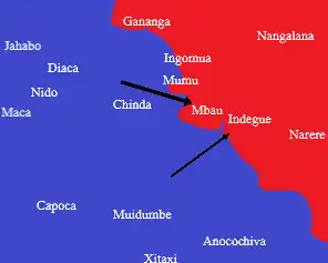 The Battle of Mbau was a battle by the joint Mozambican-Rwandan armed forces against ISIS and Al-Shabab in their headquarters of Mbau, a town 50 kilometers southwest of Mocimboa da Praia.[1] The attack on the location was part of the 2021 Cabo Delgado offensives. Mbau was known as the headquarters of Al-Shabaab and the Mozambican counteroffensive on the town resulted in the loss of Mbau, Siri 1, and Siri 2.[3]