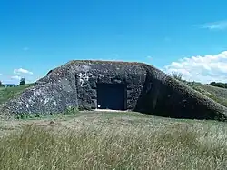 The Merville Battery was composed of four 6-foot-thick (1.8 m) steel-reinforced concrete gun casemates facing the English Channel, built by the Todt Organisation. Each was designed to protect First World War-vintage Czech M.14/19 100 mm howitzers.[11] Other buildings on the site included a command bunker, a building to accommodate the men, and ammunition magazines. During a visit on 6 March 1944, to inspect the defences, Field Marshal Erwin Rommel ordered the builders to work faster, and by May 1944, the last two casemates were completed.