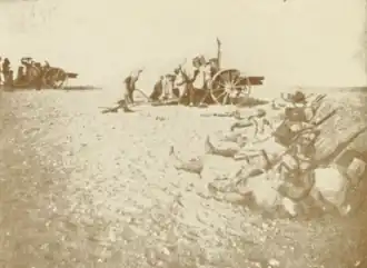 No attempt was made to immediately advance into Misrata and attack the Turkish-Arab garrison. Italian General Camerana chose instead to remain on the defensive and consolidate his position. As such, the Italians spent the next week creating a base of operations by bringing supplies on-shore and fortifying their position. Reconnaissance of the general vicinity was conducted and it was reported that there were no signs of large Turkish-Arabs forces in the area. On 23 June, however, Turkish-Arab activities were observed at the Misrata oasis. On 5 July, a Turkish-Arab force estimated to be as large as 5,000 men attacked the Italian encampment and was repulsed.[1]