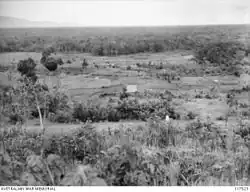 B Company of the 2/30th Australian Battalion, under Captain Desmond J. Duffy,[8] entrenched and concealed themselves on one side of the Gemensah Bridge, spanning a stream, as part of the ambush. The bridge itself had been mined with explosives, and a battery of field artillery sited on higher ground behind the infantry whence it could command the Japanese approach to the bridge. The 2/30th Australian Battalion was under the command of Lieutenant Colonel Frederick Galleghan, nicknamed "Black Jack".[9]