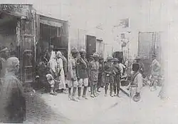 At Nazareth, the initial attack by the Gloucester Hussars was strongly opposed during street fighting.[49] The Congestion created by prisoners was increased by numerous German lorries parked along the narrow streets. As they were continuing their attack, the Gloucester Hussars were fired on by machine guns from the buildings on the high ground to the north-west and from balconies and windows. At 08:00 the Gloucester Hussars were reinforced by two squadrons and three troops of the 18th Lancers followed by a squadron of the 9th Hodson's Horse. They were subsequently counter-attack by German office workers who, despite being almost annihilated by the 13th Cavalry Brigade's machine guns, held off the British cavalry attack.[50]